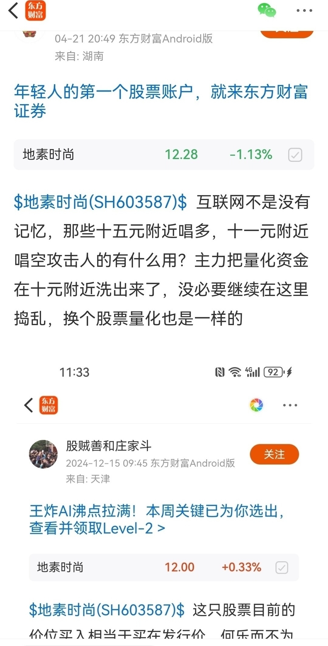 $深港通服装纺织(SZ983041)$ $地素时尚(SH603587)$ 季线大底中长线至少十倍涨幅,周线上涨趋势周线第五浪主升今年至少翻倍,底部踏空后唱空没有意义,破坏投资环境坚决抵制打击这种行为,去年十二月十五元附近唱多,今年四月十一元附近唱空,高买低卖没有必要