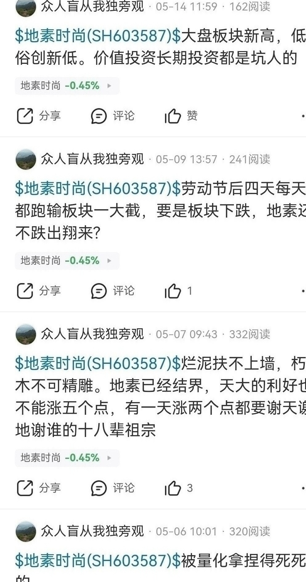 $深港通服装纺织(SZ983041)$ $地素时尚(SH603587)$ 季线底部中长线至少十倍涨幅,周线第五浪主升今年补涨也至少翻倍,互联网不是没有记忆,踏空后唱空攻击人的都是同一批账号,去年九月十元附近北向资金清仓踏空,今年六月加入沪港通才能买入,北向托又出来唱空没有意义,服装板块平均市盈率八十倍左右,绩优服装股补涨翻倍行情
