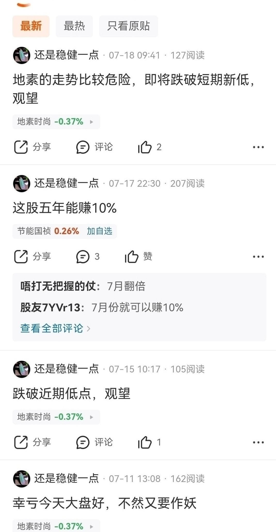 温馨提示: 1.根据《证券法》规定,禁止编造、传播虚假信息或者误导性信息,扰乱证券市场;2.用户在本社区发表的所有资料、言论等仅代表个人观点,与本网站立场无关,不对您构成任何投资建议。用户应基于自己的独立判断,自行决定证券投资并承担相应风险。《东方财富社区管理规定》