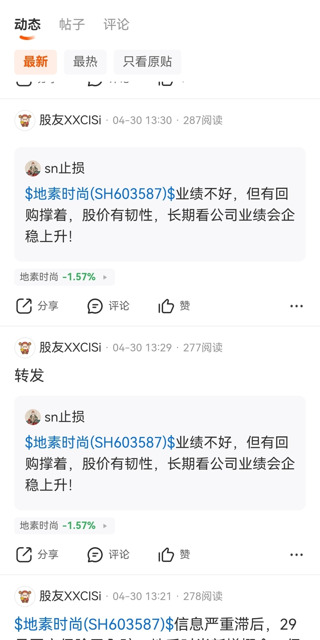 $深港通服装纺织(港币)(SZ983042)$ $地素时尚(SH603587)$ 股票回购注销减少实际流通盘,和泡泡玛特合作营收现金流大增,扩内需提振消费再通胀预期,服装板块突破周线底部月线连续阳线主升启动,六年月线下跌趋势形成季线底部中长线至少几倍涨幅,卖在季线底部十元左右唱空攻击人的资金北向资金入场最后回补仓位机会,月线仙人指路短线至少突破今年新高15.22