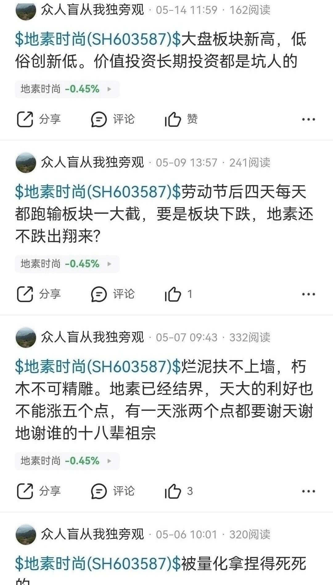 $深港通服装纺织(港币)(SZ983042)$ $地素时尚(SH603587)$ 季线底部中长线至少几倍涨幅,周线上涨趋势今年至少翻倍,服装板块平均市盈率七十多倍,补涨空间大,底部踏空后唱空的都是同一批账号,起名轩也是众人盲从的号,底部唱空破坏投资环境坚决抵制打击这种行为