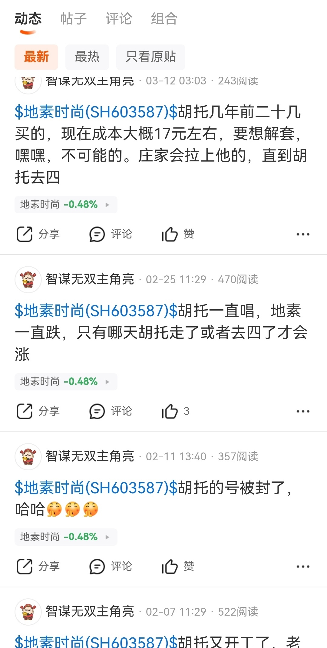 $深港通服装纺织(港币)(SZ983042)$ $地素时尚(SH603587)$ 北向资金去年九月十元左右清仓卖出踏空,今年六月加入沪港通才能买,已经踏空,踏空后唱空攻击人没有意义,股票有股票走势结构趋势,周线第五浪主升今年至少翻倍