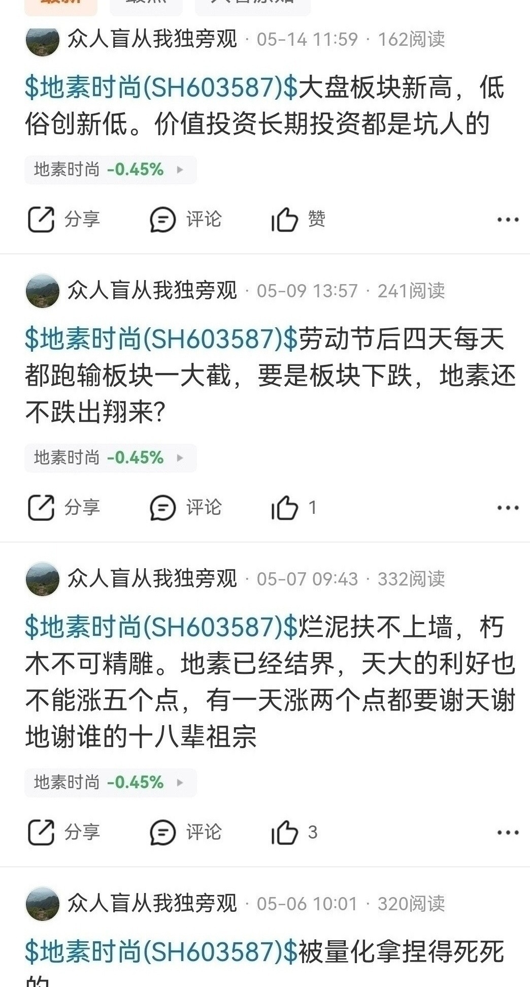 $深港通服装纺织(港币)(SZ983042)$ $地素时尚(SH603587)$ 绩优股季线底部中长线至少十倍涨幅,踏空的只有去年九月十元附近清仓卖出的北向资金,今年六月加入沪港通北向资金才可以买入已经踏空,北向托又出来唱空没有意义,服装板块平均市盈率七十八倍左右,地素时尚周线第五浪主升今年补涨也至少翻倍,和泡泡玛特合作业绩大增,四季度业绩高增长